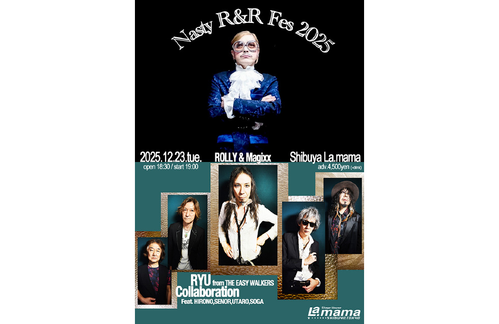 今年の『Nasty R&R Fes. 2025』は、ROLLY率いるスペシャルバンド! ☆ROLLY & Magixxの出演が決定☆ [Gt.キタシンイチ/Ba.Matty/Dr.菅大智/Key.オオクボケイ]