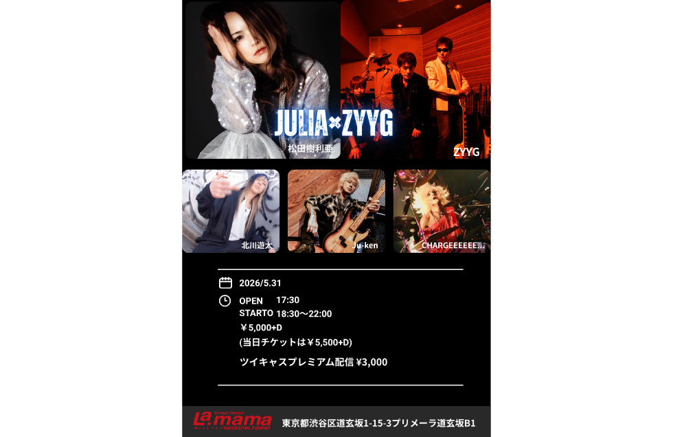 松田樹利亜(ギター北川遊太 / ベースJu-ken / ドラムCHARGEEEEEE…)/ ZYYG