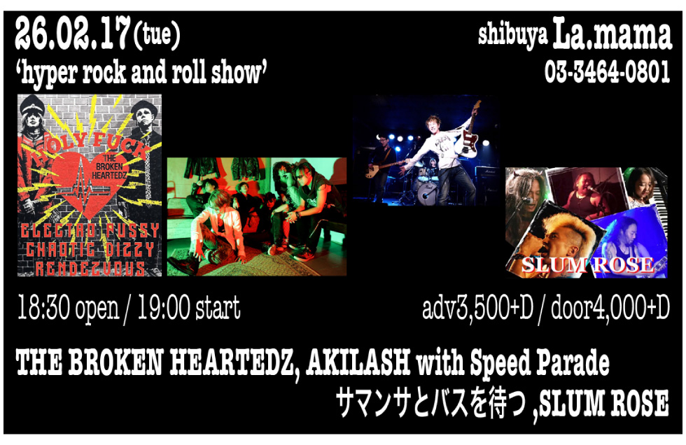 THE BROKEN HEARTEDZ / AKILASH with Speed Parade / サマンサとバスを待つ / SLUM ROSE