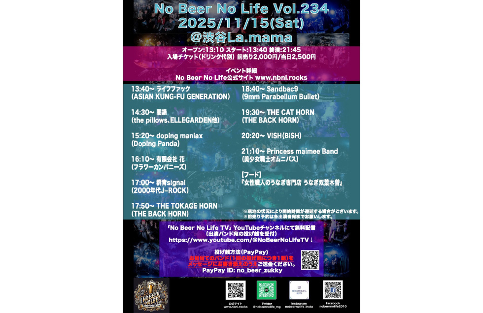 ライフファック / 闇鍋 / doping maniax / 有限会社 花 / 群青signal / THE TOKAGE HORN / Sandbac9 / THE CAT HORN / ViSH / Princess maimee Band / Food:うなぎ双葉木曽